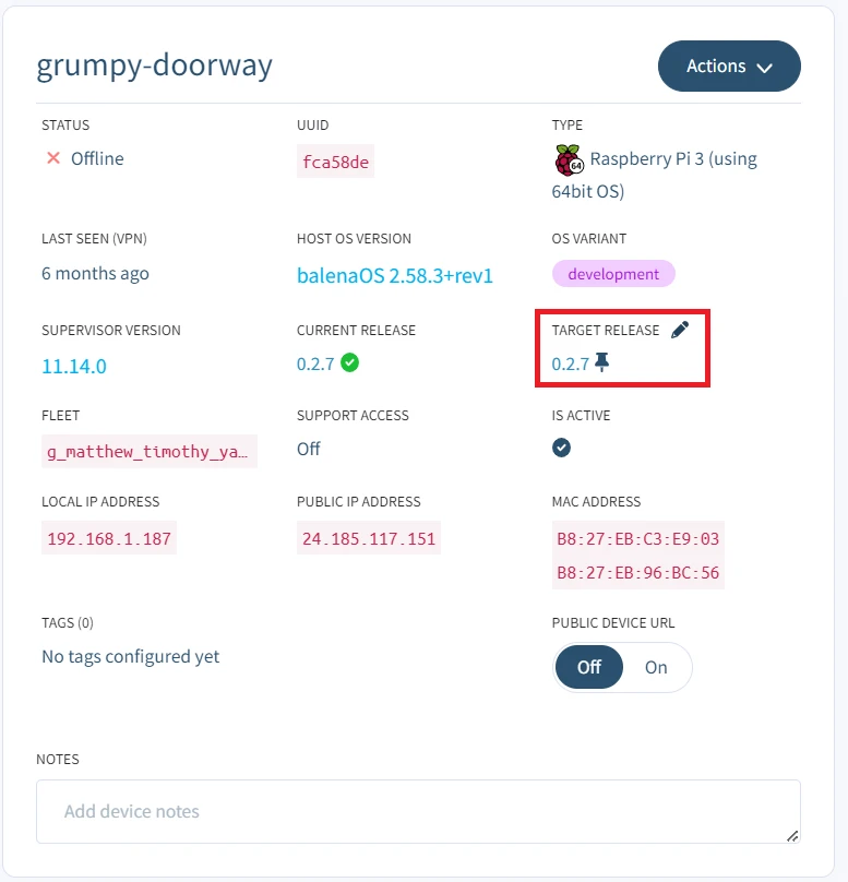 Target releaseproperty in the Device summary page, you will see a pencil icon appear. This can be used to pin the release as well.